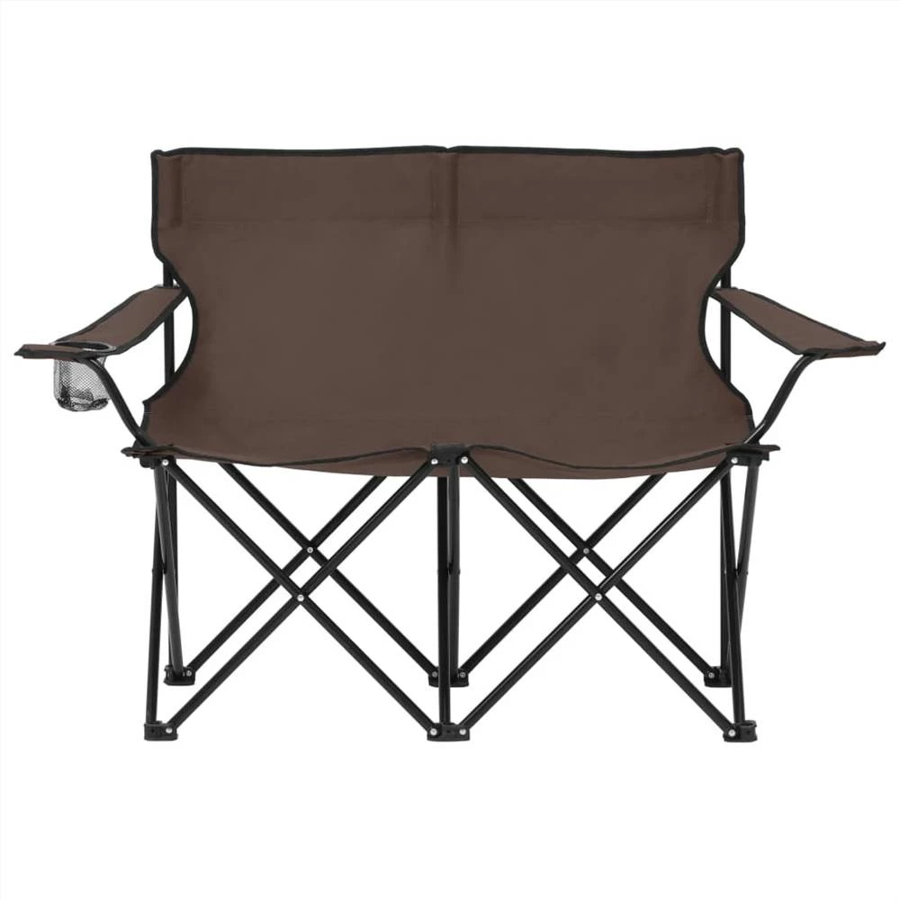 This 2-seater foldable camping chair provides seating comfort for you and your friend on your outdoor adventures. This double chair is made of a steel frame, making it sturdy and stable for daily outdoor use. The seat and the backrest are made of robust, water-repellent Oxford fabric, which provides enough support and guarantees ideal seating comfort and longlasting service. Additionally, the cup holders can keep your bottle or cup conveniently at hand. This outdoor chair can be folded to save space for easy transport when going camping or picnics.