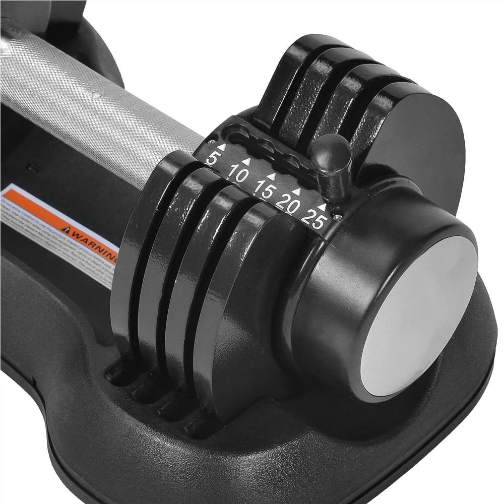 With just a push and slide, you can change your weight setting, can change between 5 to 25 lbs instantly. Quick & easy weight change.