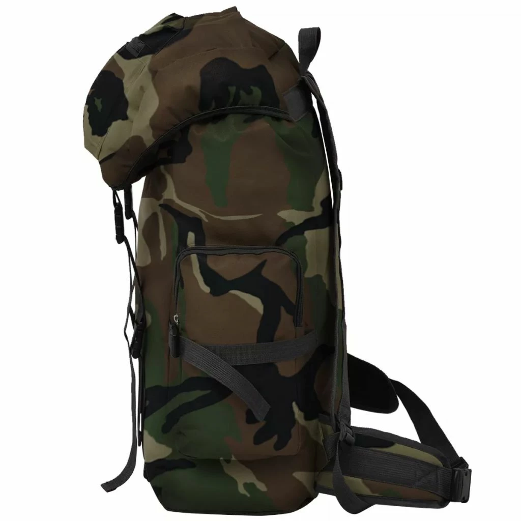 Our comfortable and practical military-style backpack is the ideal companion for military personnel, but also for scouts, hunters, hikers and outdoor enthusiasts. Made of high-quality 600D polyester with a water-repellent coating, this combat backpack is durable, hardwearing and weather resistant. The army-style backpack features two wide shoulder straps and a strap around the waist. It has a large capacity of 65 litres so you can pack everything you need on your outdoor adventures. The large main compartment can be used to store your big items, and its drawstring closure and buckle closure make sure your belongings are kept safe. There are also two side pockets and two lid pockets, providing extra space for safely and conveniently storing the items you need close at hand, such as knives, glasses, and lamps.