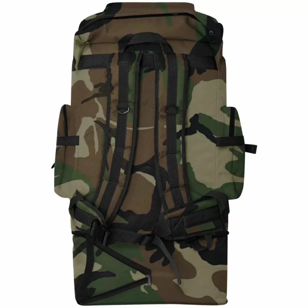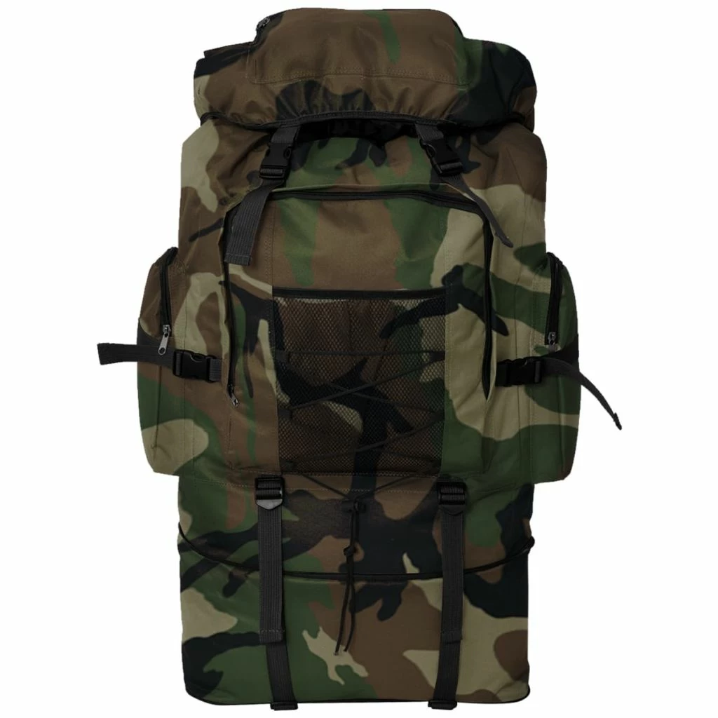 Our comfortable and practical military-style backpack is the ideal companion for military personnel, but also for scouts, hunters, hikers and outdoor enthusiasts. Made of high-quality 600D polyester with a water-repellant coating, this combat backpack is durable, hardwearing and weather resistant. The army-style backpack features two wide shoulder straps and a strap around the waist. It has a large capacity of 100 litres so you can pack everything you need on your outdoor adventures. The large main compartment can be used to store your big items, and its drawstring closure and buckle closure make sure your belongings are kept safe. There is also a zipped front pocket, one mesh pocket, two zipped side pockets, and two zipped lid pockets, providing extra space for safely and conveniently storing the items you need close at hand, such as knives, glasses, and lamps. Thanks to the zip fastener on the bottom, the height of the rucksack can be expanded to 78 cm.