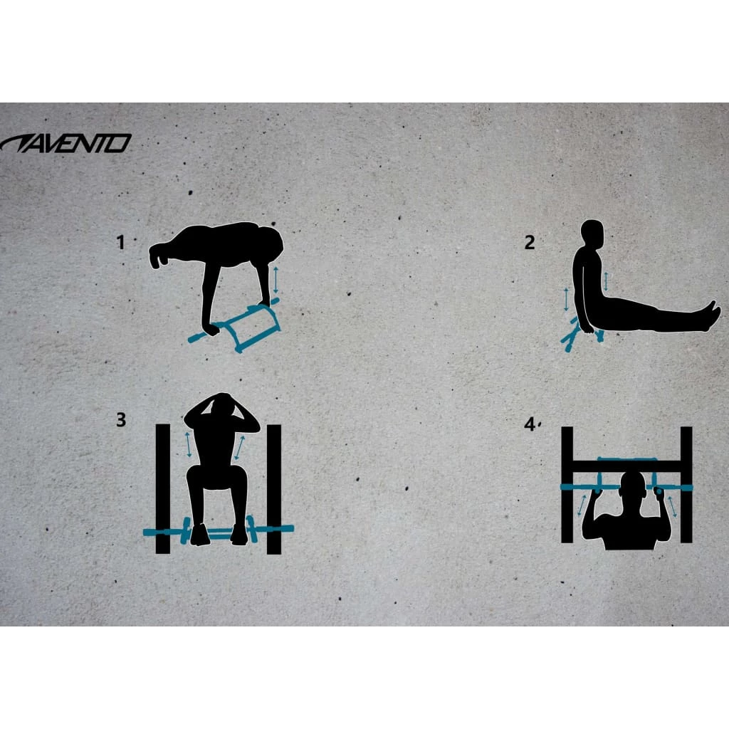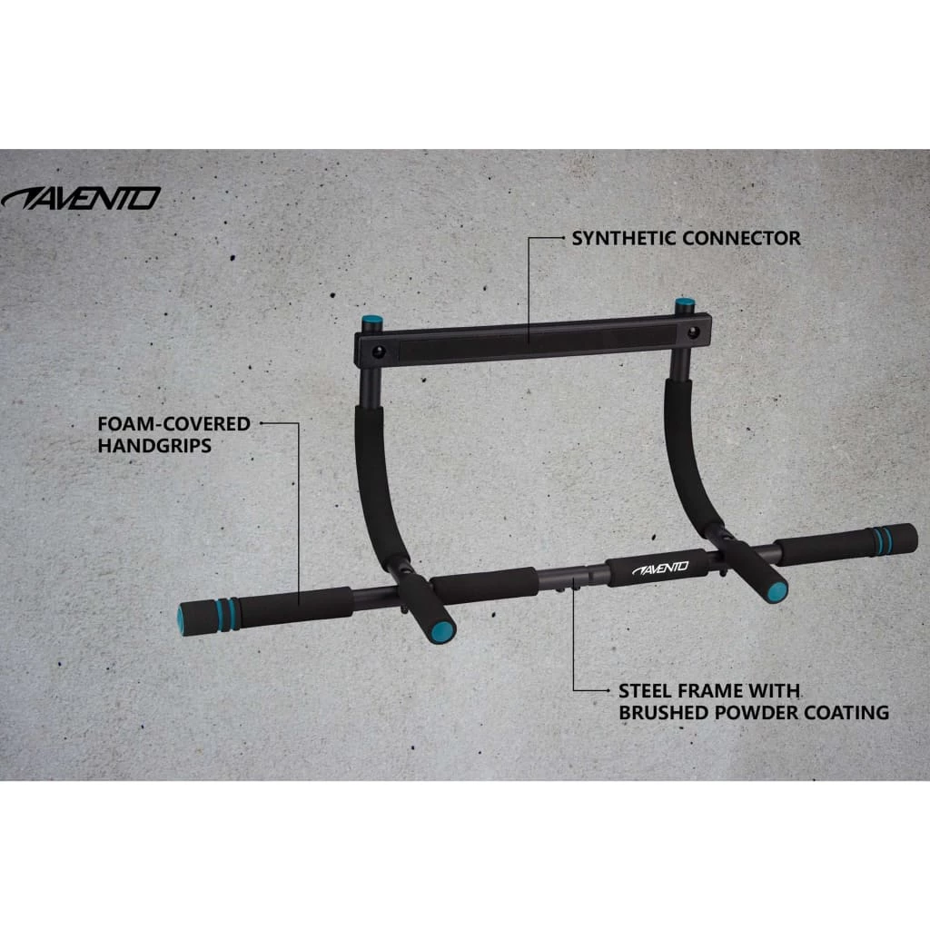 With this Avento fitness doorway trainer you get a total personal gym with a wide variety of exercise possibilities. Train the upper body with pull-ups and vary in grip positions to train different muscle groups. Make your workout as tough as you want. The clever design makes the pull-up bar easy to use on an (overhanging) door frame, without using screws. You can also place the multi-fitness trainer on the floor as a stable base to practice push-ups and triceps dips. Furthermore, you can secure this training bar to the bottom of the door frame to hook your feet under for sit-ups. The robust doorway trainer is made of durable steel with a luxury finish and has soft foam handles for a proper and comfortable grip.