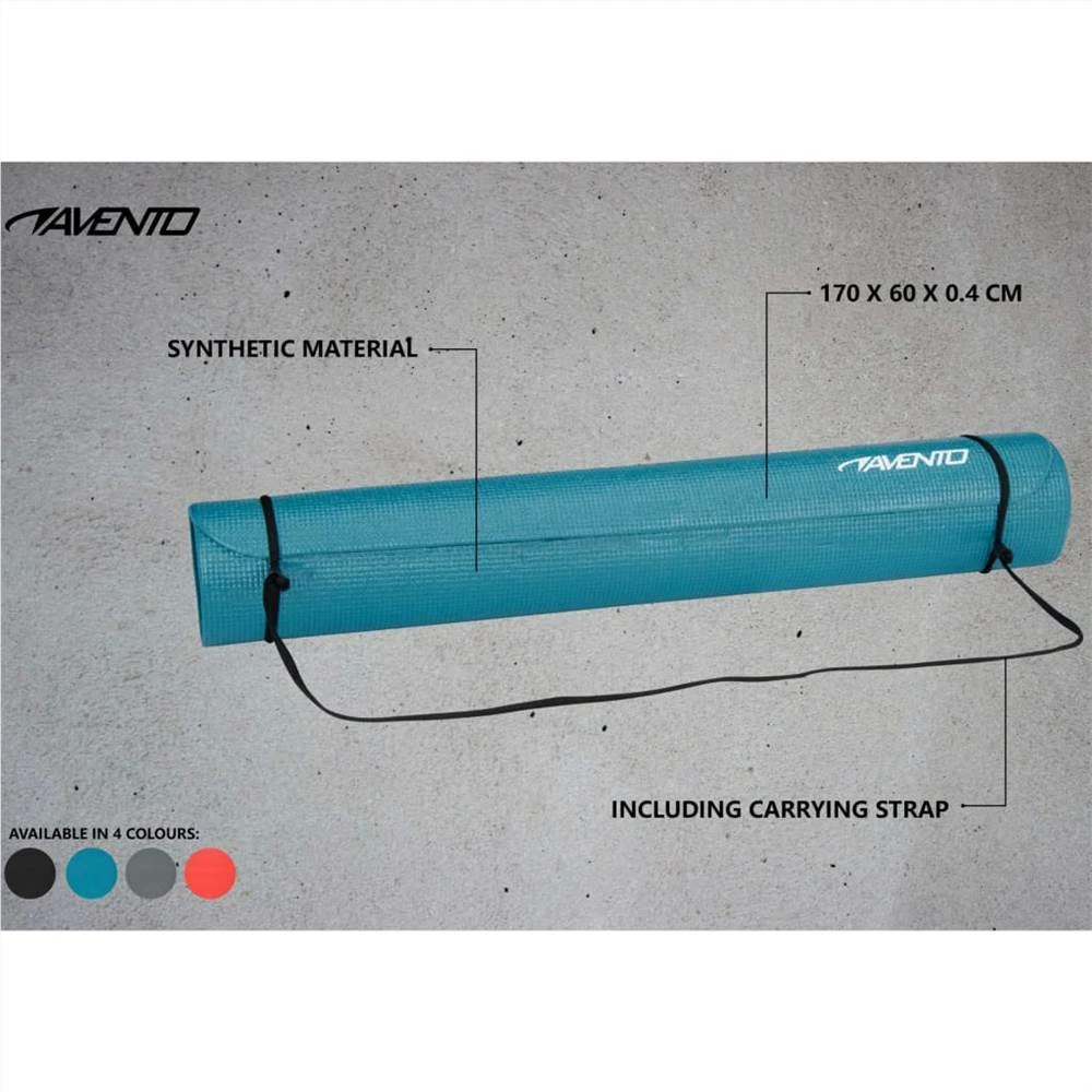 Are you looking for a comfortable surface for mat exercises in fitness, yoga or Pilates? The basic fitness/yoga mat by Avento offers an appealing solution. This exercise mat offers comfortable support with a reasonable grip. The mat is easy to clean and with a thickness of 0,4 cm it is also lightweight. In addition, it is easy to roll up and, thanks to the handy carrying loop, and so easy to take anywhere. The yoga mat is available in sporty colours.