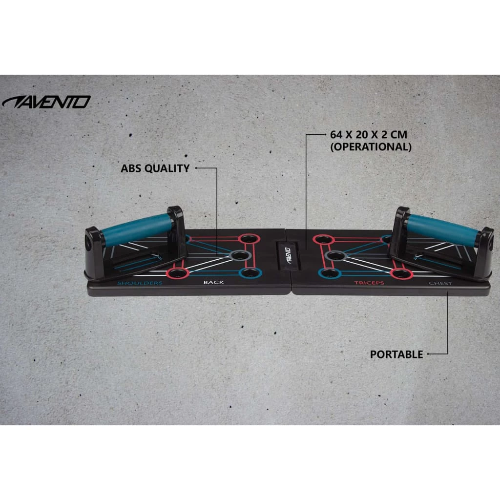The Avento foldable push-up board is an innovative exercise equipment set for a complete home training. It has never been easier to train different muscle groups with 12 different push-up options! The 4 colours on the board represent 4 different muscle groups that can be trained with this board: back, chest, shoulders and triceps. Place the push-up supports on the indicated colour to target the desired muscle group. Burn calories and build muscle mass at the same time. This Avento push-up board is easy to clean, robust, durable, foldable and therefore takes up little space.