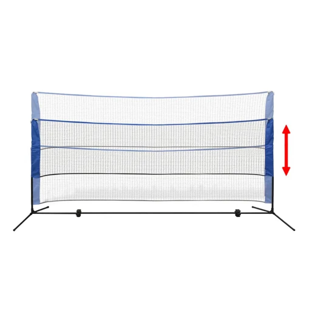 This recreational badminton net set will allow you to enjoy not one, but three classic ball games! This sturdy net and posts can be set up in minutes without the need for tools. This net is also easy to disassemble and neatly stores away in the included carrying bag together with all accessories. The mesh net is double stitched for sturdiness. The height-adjustable frame is constructed from durable yet lightweight steel tubing for easy transport. This set is suitable for badminton, volleyball, tennis, and other ball games that require a net. Delivery includes: 1 badminton net and frame set, 3 shuttlecocks, 4 iron ground stakes, 4 plastic ground stakes, 2 PP guy ropes and 1 carrying bag.