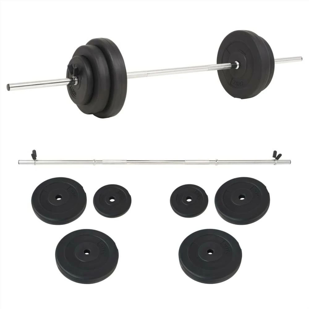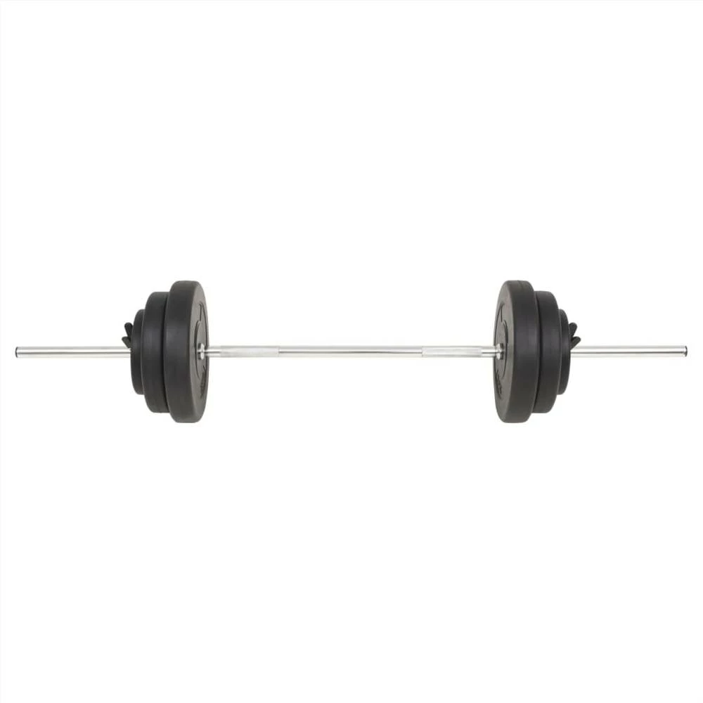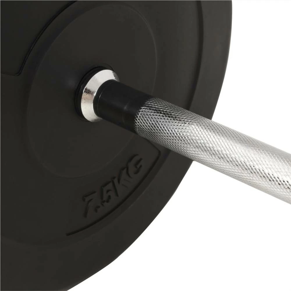 This versatile barbell set is perfect for chest, biceps, arms, triceps and back muscles. It includes two 7.5 kg plates, two 5 kg plates, two 1.25 kg plates and one 2 kg barbell bar and has a total weight of about 30 kg. This set allows the users to variably select the weights they want to lift for different exercises. These plates are made of cement with a plastic shell and they can easily be secured onto the bars with the included spring locks. The weight is clearly stamped on each plate for quick and easy identification.