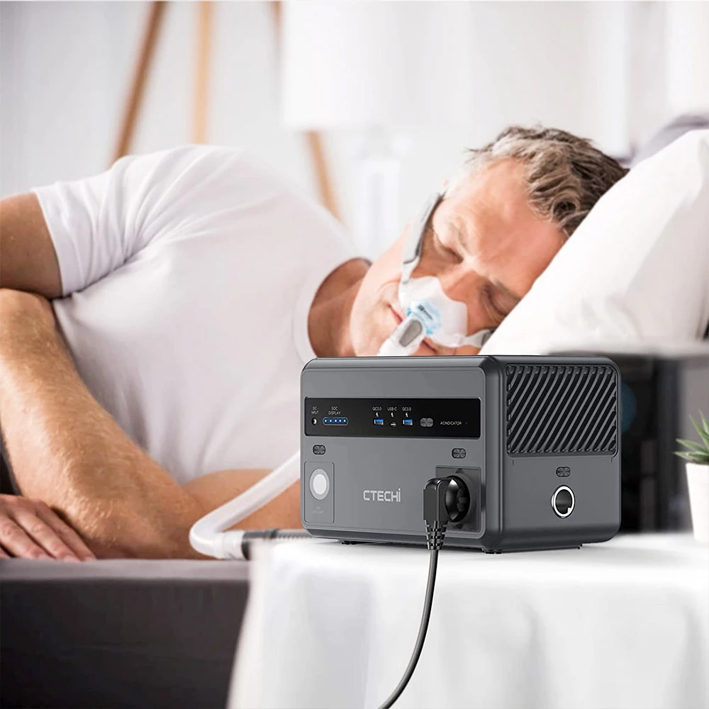 Equipped with 1 x pure sine wave AC, 1 x PD 45 W, 2 x USB QC 3.0, and 1 x DC, it can power up to 5 devices simultaneously. Suitable for mobile phones, tablets, laptops, fans, CPAPs, and much more to meet your needs.