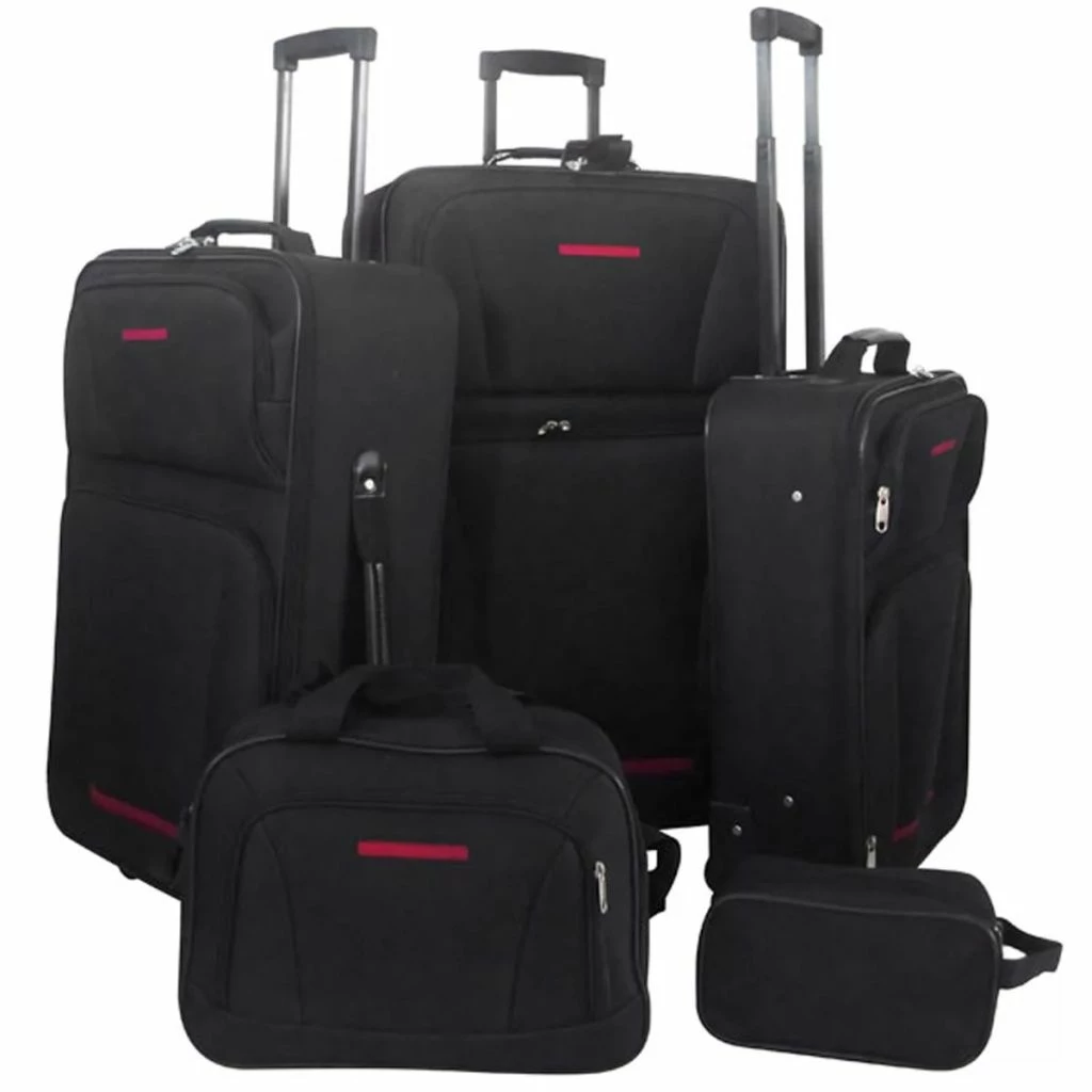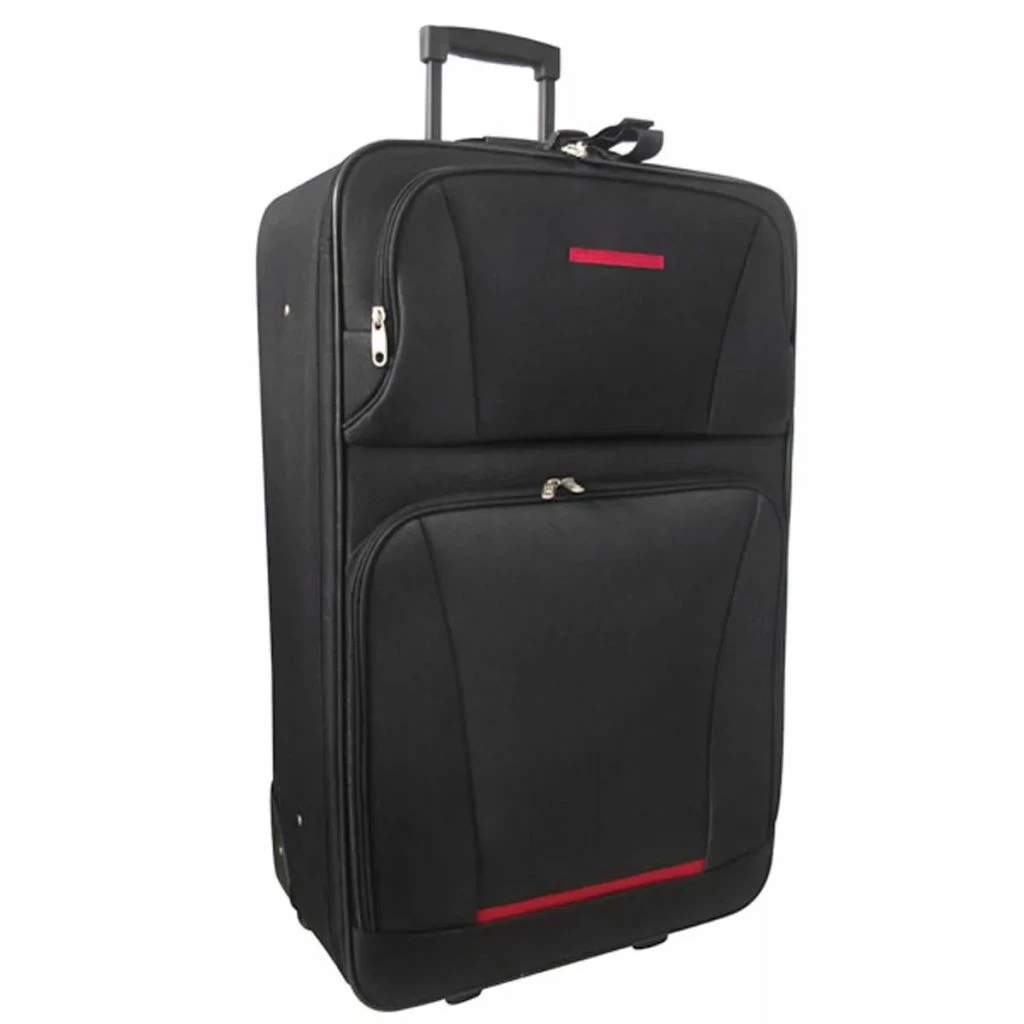 In this sustainable luggage set you can easily pack all your bagage. Because of the different size of the trolleys the set is suitable for small and big travels. The pull-out telescopic handles and the 2 wheels underneath the trolleys make this set practical when used. The trolleys are made of fabric (100% polyester) with PVC coating. The edges of thje trolleys are additionally lined so they are resilient. The luggage set is delivered including a handy travel bag and toiletry bag. When you store the trolleys it’s possible to interlock them so you only have to find a storage place for the biggest trolley. In this way you can save a lot of extra space! This 5 part luggage set is available in red and black.