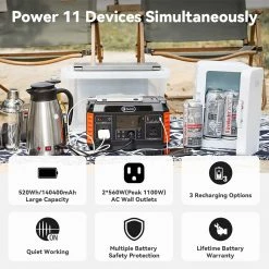 This portable power station has a reliable Battery Management System to protect the current generator from short circuits, overcurrent, over voltage, low voltage, over temperature, etc.