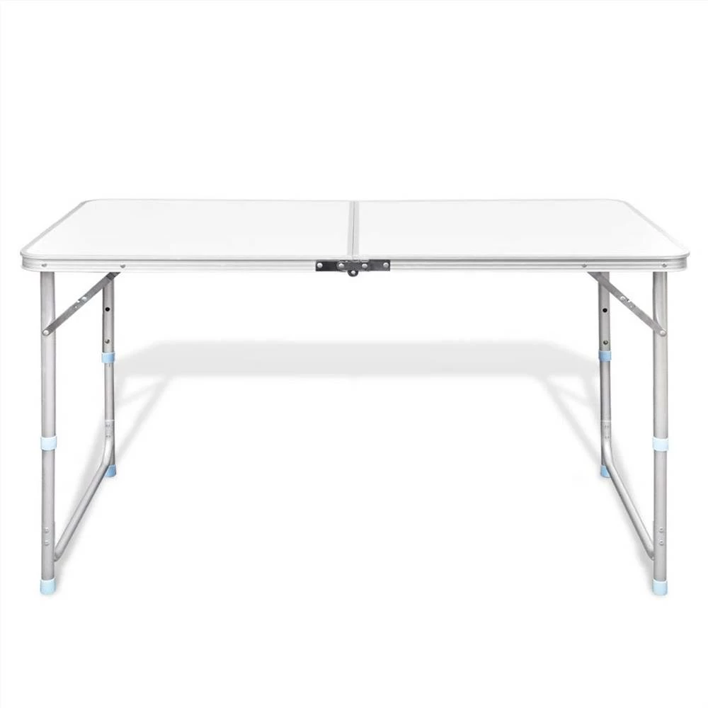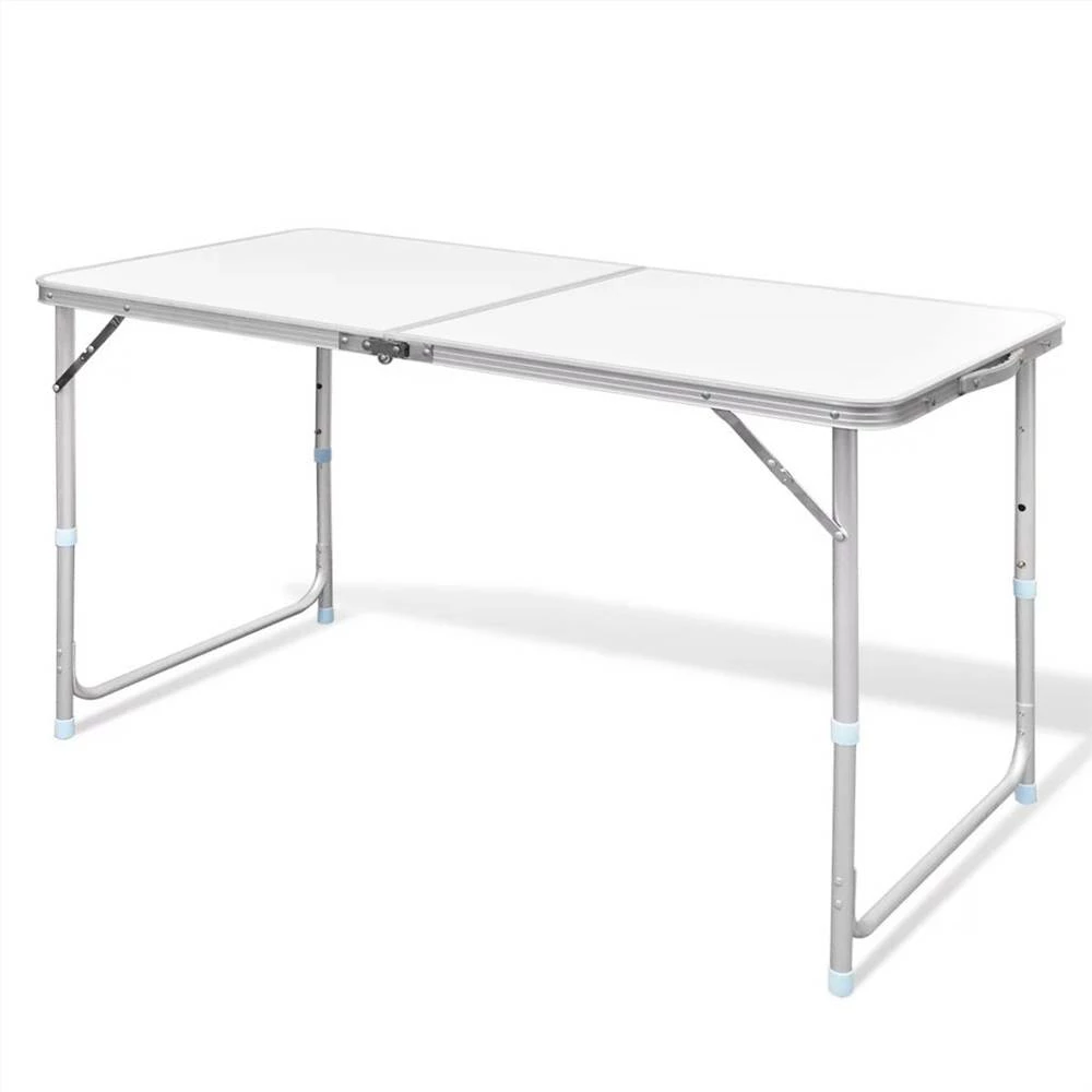 This foldable camping table with practical carrying handle will come in handy in kitchens, on patios, in gardens, and on picnics or camping trips. The table height can be adjusted to 55 cm, 62 cm and 70 cm. The camping table is light in weight. Thanks to the folding design, this camping table is easy to transport and can be stored away quickly when not in use. The carrying handle makes it very easy to bring the table with you when going out to have a picnic or camping trip. Thanks to the sturdy structure, this camping table has a high load capacity of up to 30 – 50 kg. Thanks to the metal frame and the robust MDF tabletop, it is highly stable and durable.