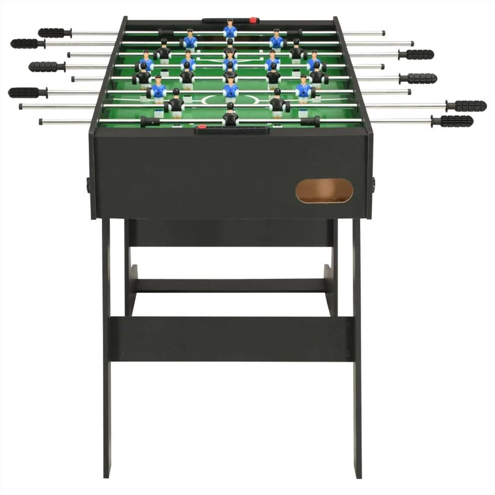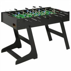 Having a professional sized football table right in your very own home is now possible with our 121 cm football table. It will bring loads of fun to any setting, perfect for home game room, arcades, as well as other entertainment areas. This football table is suitable for one-on-one competition or group play. The table is crafted with sturdy MDF and chromed-finished steel rods to keep the table functioning for years to come. The dimensions of the printed playfield conform to the official tournament standard, which gives you a realistic playing experience. It features 8 rows to allow 4 rows per team, 11 black players and 11 blue players, as well as a cup holder on each end to stay hydrated when competition heats up. Equipped with flexible sliding player rods with non-slip handles, it offers you easy and comfortable grip. Its simple foldable functionality makes a storage a snap. When it’s gaming time, the table can be easily folded back, providing hours of fun for your family. A complete football game table will be delivered, including 2 goals, 2 footballs, 2 scoreboards, 8 player rods and 22 players.