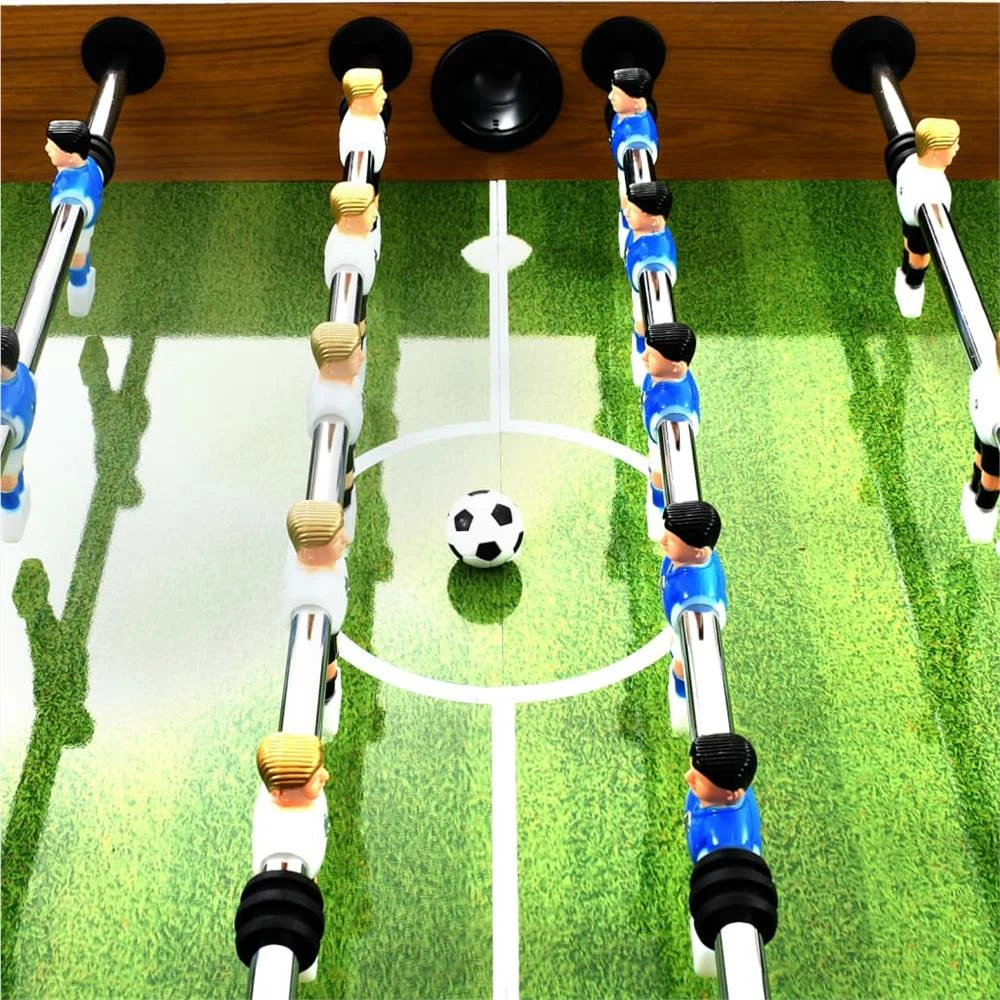 Host a professional table football game in the comfort of your own home with this football table. It is suitable for one-on-one competition or group play. The table is made of MDF and has stable legs, which make it convenient to use and it has a great price-performance ratio. The dimensions of the printed pitch conform to the official tournament standard, which gives you a realistic playing experience. The table is equipped with flexible sliding player rods with non-slip handles for easy and comfortable playing. The legs are adjustable in height for more flexibility. A complete table football game will be delivered, including 2 goals, 2 footballs, 2 scoreboards, 8 player rods and 22 players.