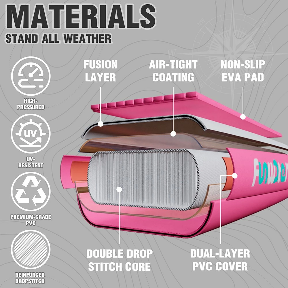 New high density PVC material, 35% lighter than comparable models. Lighter weight board body, more wear-resistant.