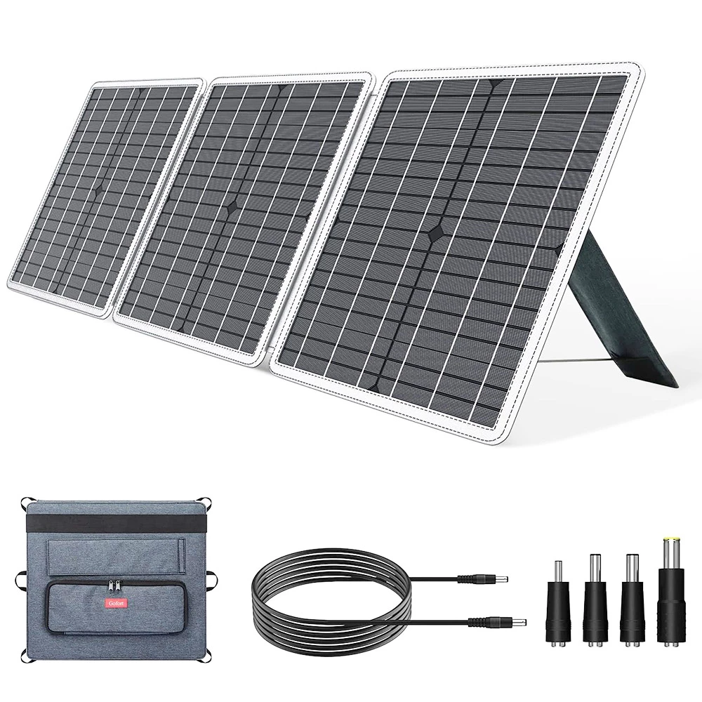 Gofort 60W foldable solar panel can be compatible with most solar generators on the market, 5.5*2.1mm DC cable for charging Gofort 330W/600W/1200W portable power stations as well as with portable generators from Rockpals, Suaoki, FlashFish. With 4 connectors (8mm /5.5*2.5mm /3.5*1.35mm /6.5*3.0mm), it can also be used with other solar generators from BALDR, Jackery, Goal Zero, Paxcess etc.