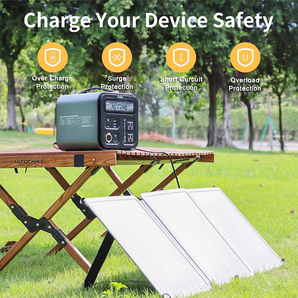 Equipped with USB A (4.75-5.35V/2.4A max) & USB QC 3.0 outputs, charging multiple small devices at the same time for smartphones, tablets, laptops, lamps, power banks, Macbook Pro, iPad, switch, etc. Perfect for outdoor life and even unexpected power outages.