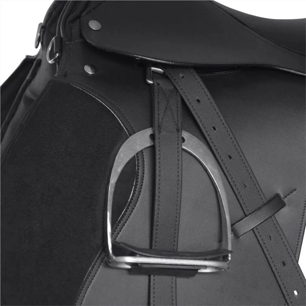 - A 5-in-1 set: Real leather saddle, saddle blanket, stirrups, stirrup belts, girth