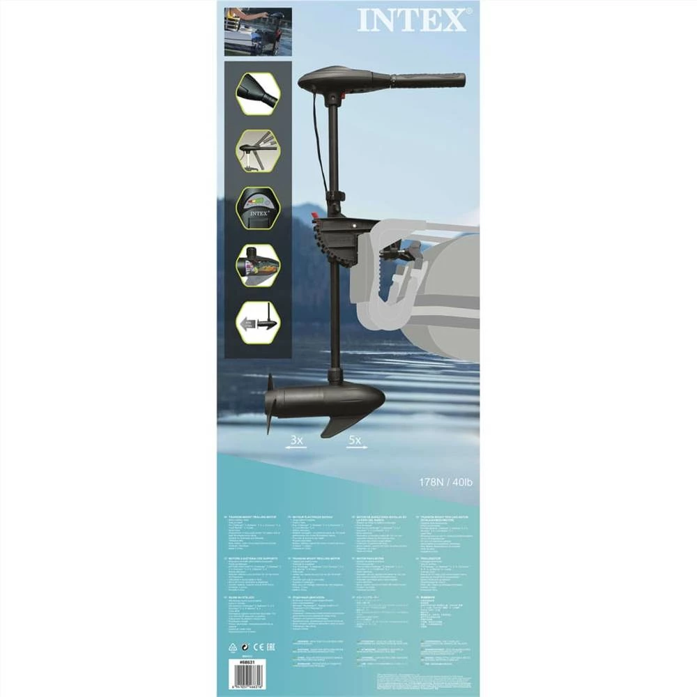 This Intex trolling motor 68631 is an ideal device to mount on your boat when you are tired of rowing. The motor, distinguished by 420W power, is suitable for sailing in both freshwater and saltwater. The outboard motor has 8 gears, 5 forward and 3 reverse. The built-in battery meter indicates how full the battery is. The motor operates quietly and can be mounted on different types of Intex inflatables: Challenger 3, Seahawk 2, 3 & 4, Excursion 4 & 5, Mariner 3 & 4.