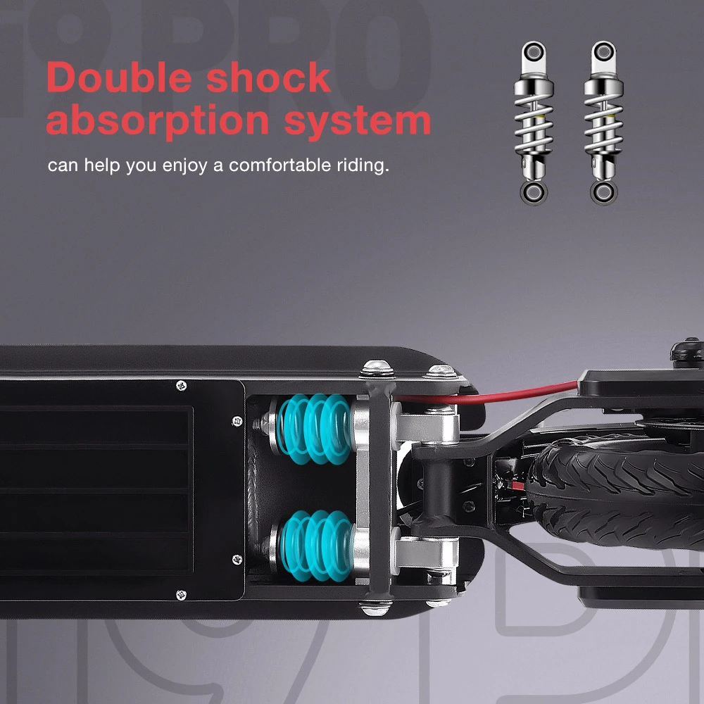 The scooter weighs only 13.5kg. The lightweight and foldable design are easy to carry and store, realizes 3 seconds of folding. i9 Pro scooter fits in the trunk of most cars so you can bring it wherever you want to rid.