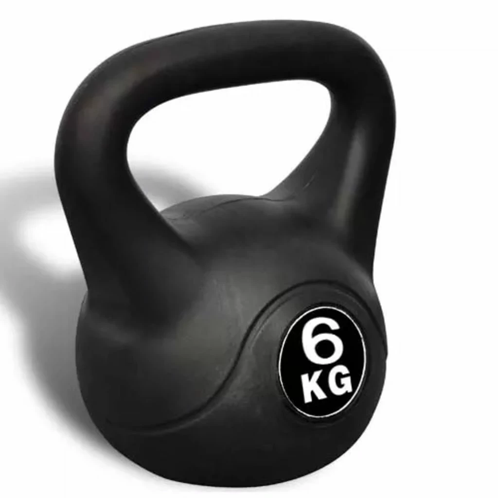This kettle bell is made of plastic with a compact interior. It has a massive and professional construction. This kettle bell weighs 6 kg. Thanks to the material it doesn’t damage the ground during your exercise.