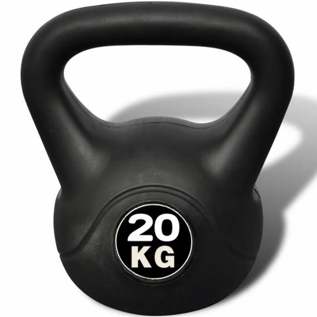 This kettle bell is made of plastic with a compact interior. It has a massive and professional construction. This kettle bell weighs 20 kg. Thanks to the material it doesn’t damage the ground during your exercise.