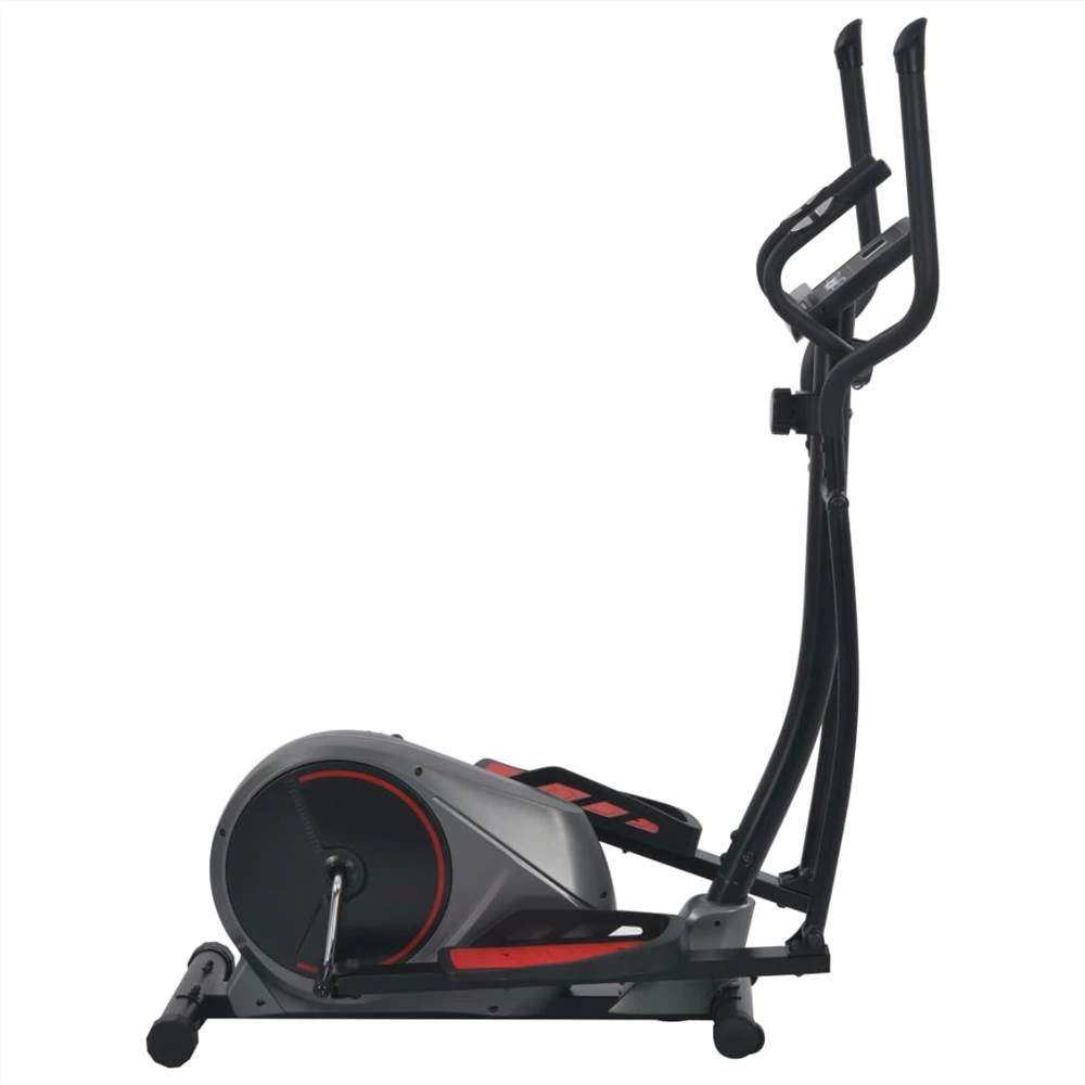 This robust magnetic elliptical trainer will be a great choice for exercising at home. Equipped with dual flywheels, 8 manually-controlled intensity settings, and an LCD computer display, this cross trainer is sure to give you an efficient workout. You can monitor your performance on the LCD display, which shows information about the elapsed time, current speed, distance, calories burned and pulse. The computer display has a tablet holder so you can use your tablet or watch a movie during your workout. The hometrainer is ergonomically designed and has an extra-large size. Its two handles provide you with sufficient scope for an an optimal walking position and offer an extra upper body workout at the same time. The large, non-skid foot pedals ensure an optimal power transfer from your feet to the pedals. The magnetic brake system and precision-balanced flywheel are frictionless for a smooth, quiet, and maintenance-free operation. The transport rollers make it easy to move the ergometer around. The cardio equipment needs to be assembled.