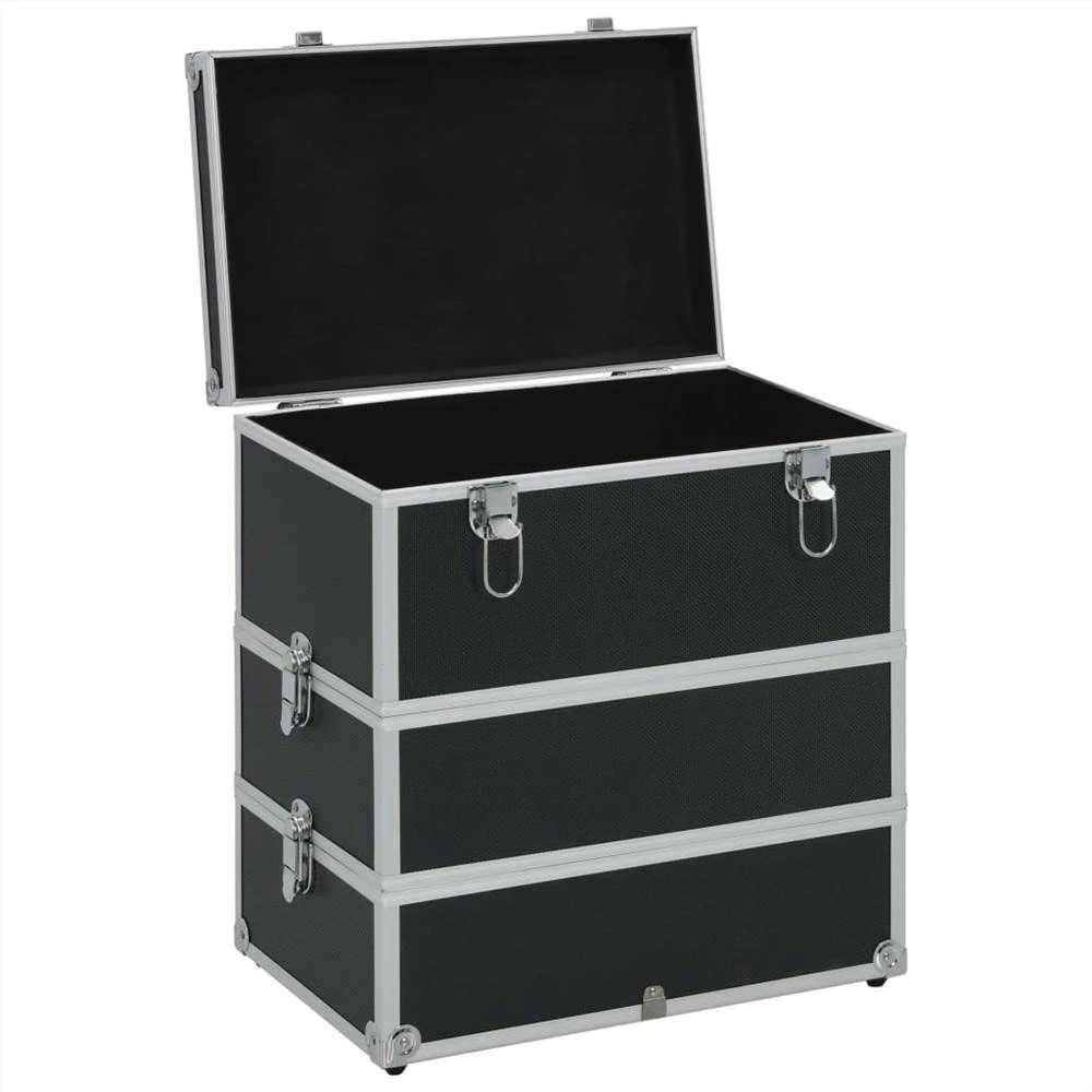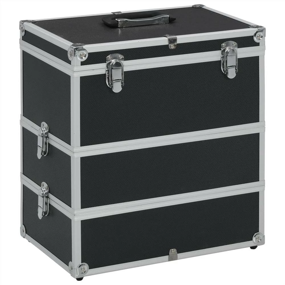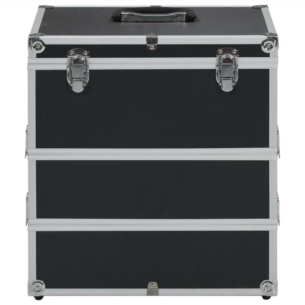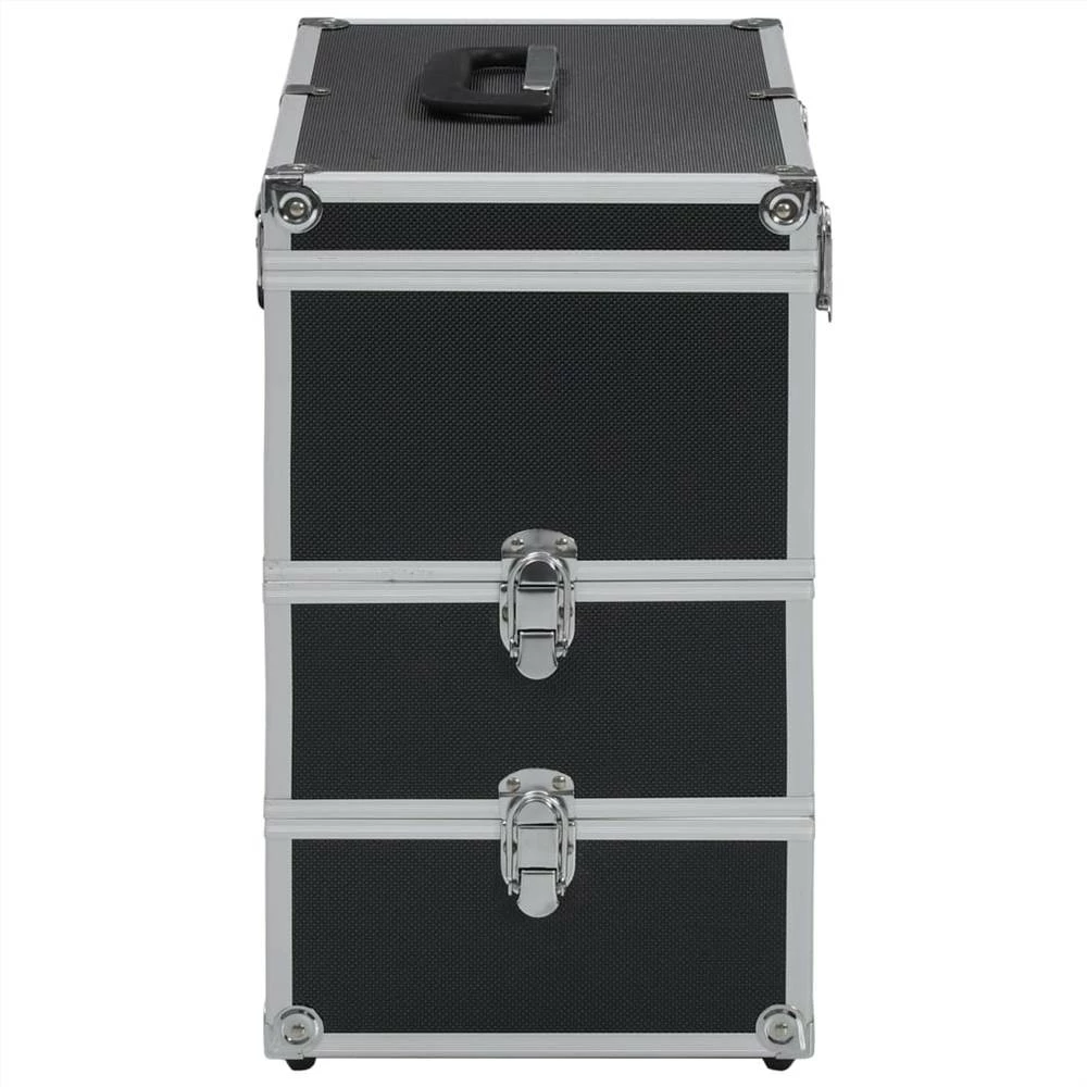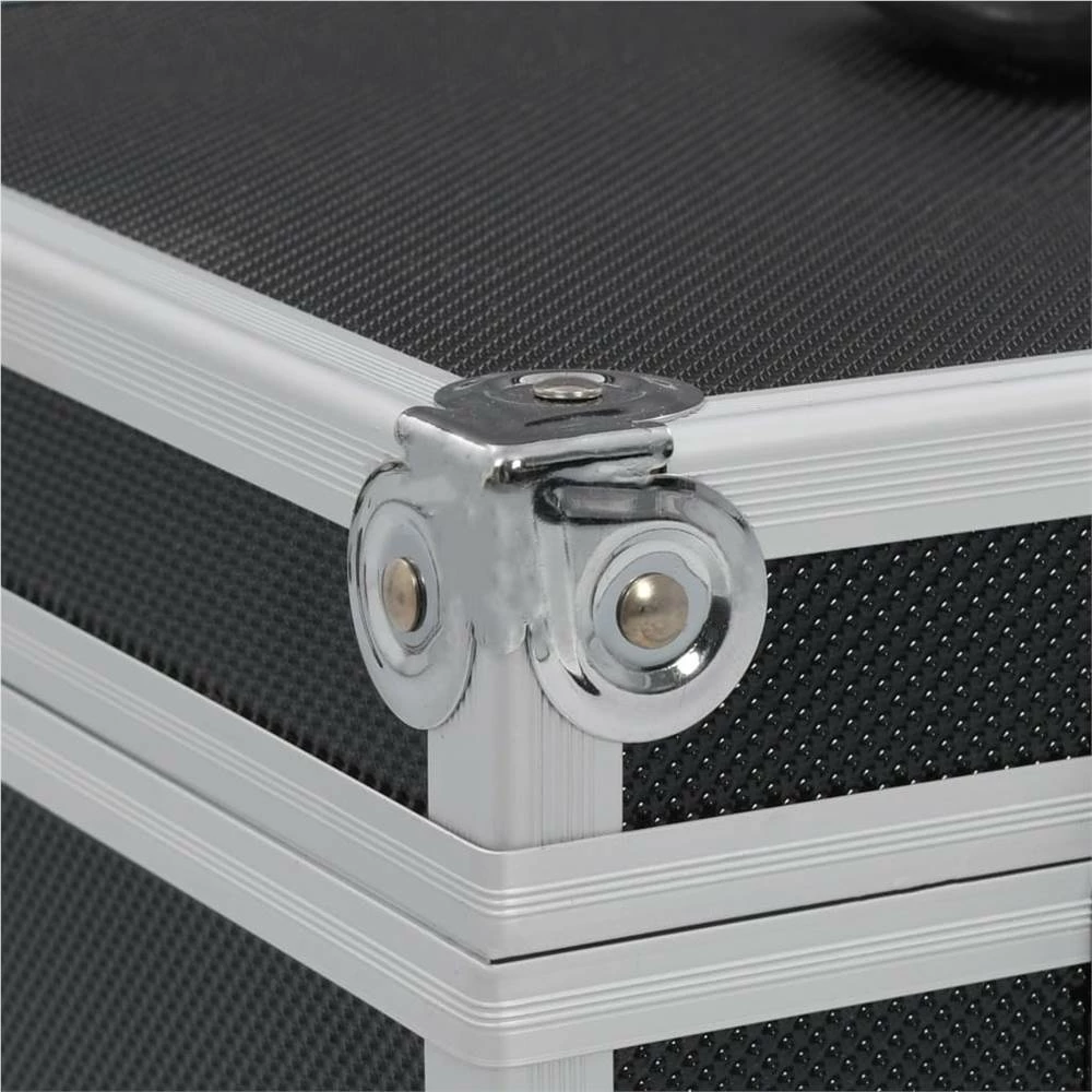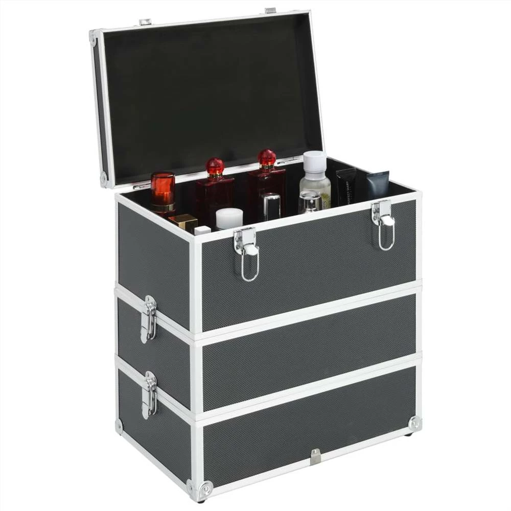 Our make-up case is the ideal solution for keeping your cosmetics neatly organised. Simply pack everything you need in this practical beauty case and take it with you! Made of wood, ABS sheeting, as well as aluminium, this make-up case will handily store your cosmetics and maintain them in perfect condition. This vanity case features 3 detachable tiers, providing ample storage space for your cosmetics and beauty products. Additionally, it features a carrying handle which enables you to easily take along everywhere you go!