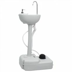 Our portable handwash stand makes water easily accessible outdoors to clean your vegetable, fruits and hand. The wash sink is perfect for camping, motorhome trip, construction site, food event, pop kiosk, etc., thanks to its lightweight and compact design. The camping handwash station is fitted with a 3-litre soap dispenser, a towel rack and a 17-litre freshwater tank. It features a hands-free operation design by stepping on the foot pump to provide a stream of water. The pedestal sink has two built-in wheels for easy transportation. Make your camping more convenient and enjoyable with our portable handwash stand!