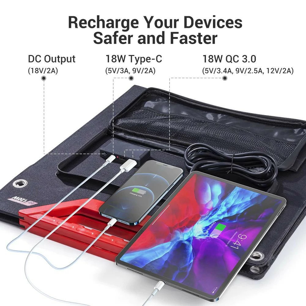 ROCKPALS RP083 120W Portable Foldable Solar Panel, 23.5% High Efficiency, IP65 Waterproof, Support Parallel
