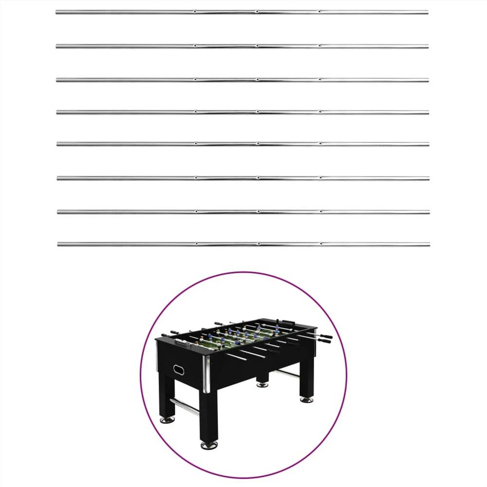 This set of 8 hollow table football rods are enough to outfit a standard football table. It is ideal for replacing worn or lower-quality rods for more enjoyable game experience. Made of steel, the rods are durable enough and built to last. The surface is designed with chrome finish. Please note that the players, handles and bearings are all not included in delivery.