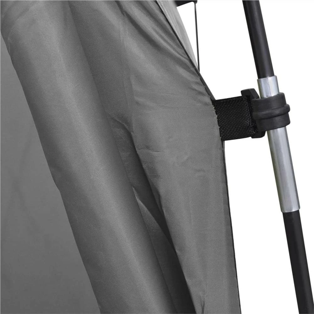 This convenient shower tent is perfect for outdoor use, such as parks, beaches and campsites. This changing tent is made of water-resistant material and supported by a fibreglass pole. It is also durable, stable and practical. The WC tent has a covered roof for extra privacy when showering or getting dressed. Its large, zipped door provides an easy entryway. There are two storage compartments inside the shower house for keeping your shampoo, shower gel or other essentials. Thanks to its floorless design, you can keep the room clean. This toilet house can also be easily folded into its own compact carrying bag when not in use.