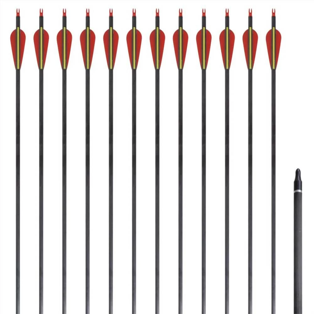 Fill your quiver with these high-quality arrows, made of strong yet lightweight carbon. With a maximum draw weight of 40 lb, this arrow can cater to a wide range of shooters. Delivery includes 12 pcs carbon arrows.