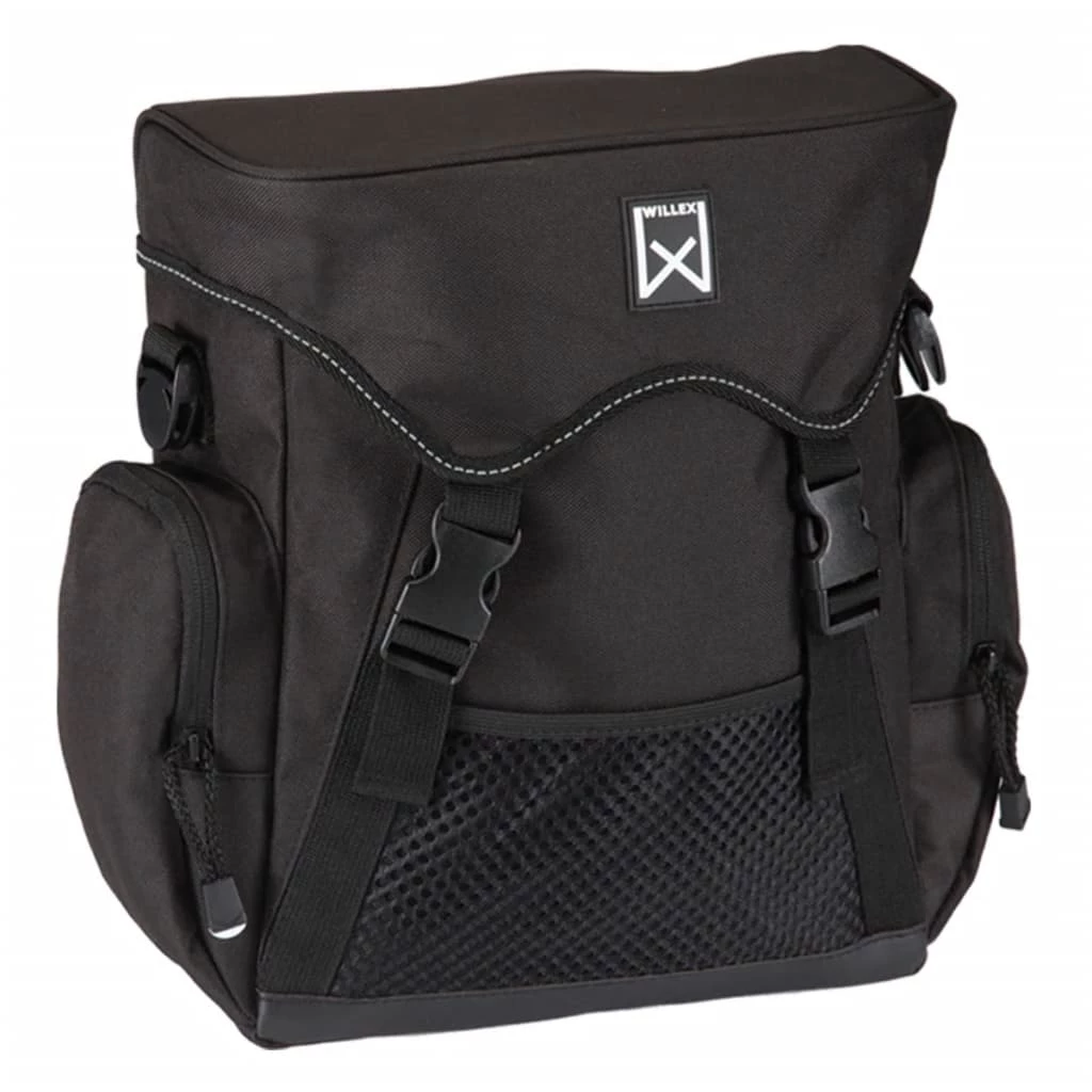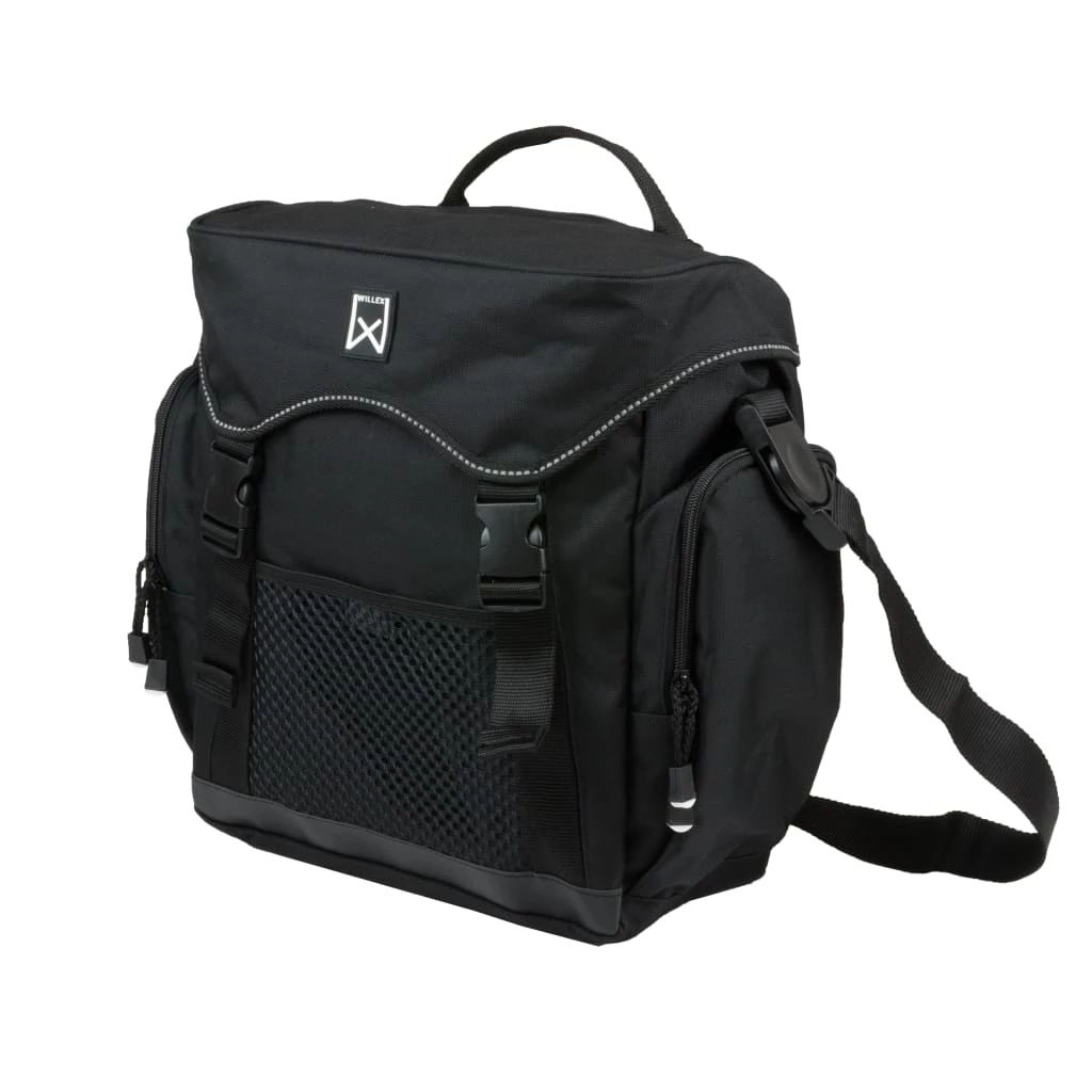 This Willex pannier XL is a great accessory for bicycles. The bag is made of water-resistant polyester and is therefore extremely durable and highly practical. It has reflective stitching for visibility. With a capacity of 17 litres, the single pannier is ideal for general daily use. It has been designed with a mesh front pouch and two zipped pouches on sides. The bag has an adjustable and removable shoulder strap. It is also equipped with the hook and loop fasteners and hooks, so this pannier is very easy to mount.