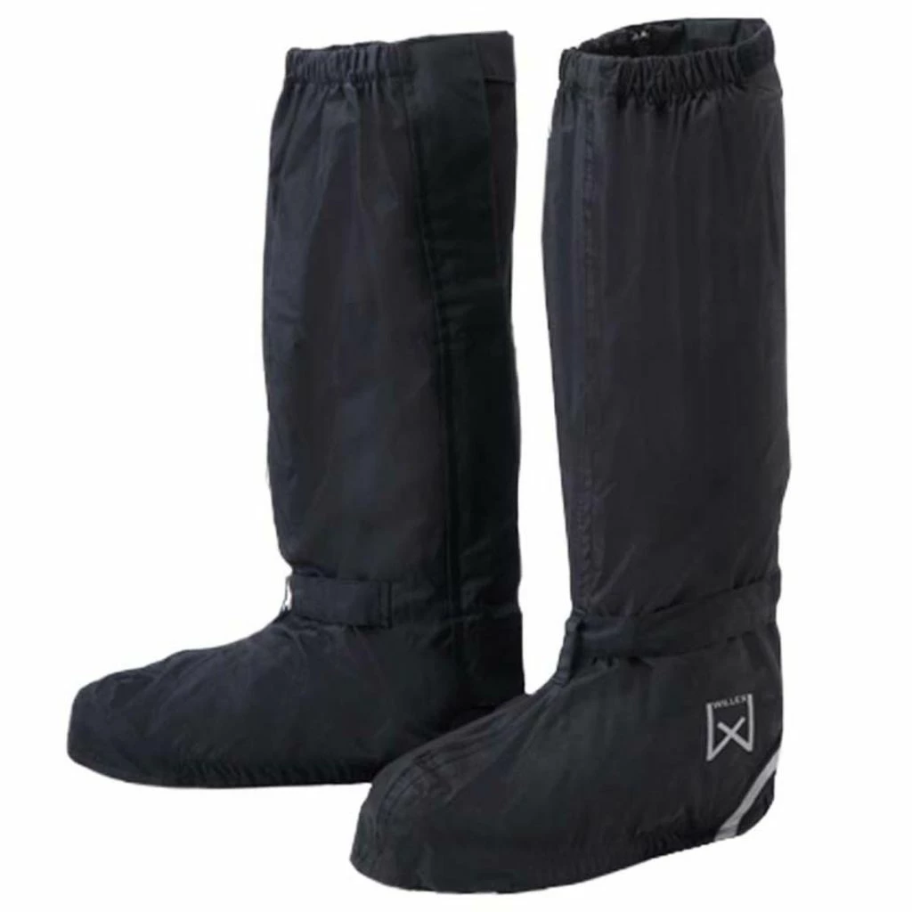 These Willex bicycle shoe covers are waterproof overshoes that will keep your feet and calfs dry, clean, and warm. The cycling galoshes with high-visibility reflective heel stripes are made of sturdy waterproof polyester and have an elastic cuff and adjustable hook and loop fasteners for a snug fit. Their sealed, closed sole design keeps out water. Please note the shoe covers are only suitable to be worn when pedalling.
