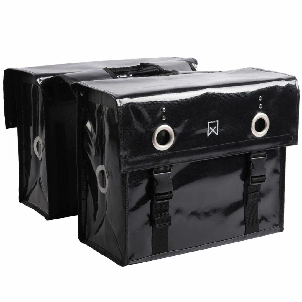 The Willex newspaper bag is a classic, double pannier bag with a capacity of 52 litres. Its utilitarian design gives it a trendy, industrial look. Although it is made of 100% waterproof material and suitable for broadsheets, you don’t have to have a paper round to enjoy the many benefits of this roomy bicycle bag. It is made of sturdy tarpaulin and equipped with the hook and loop fasteners so it can be easily and securely mounted onto your bicycle’s rear pannier rack, without the need for any tools. It has sturdy bottom panels for extra rigidity and extra-large reflective surfaces on the front and rear for enhanced visibility and after mounting there is still enough room for your rear lighting. This extremely roomy double pannier bag from Willex is ideal for trips to the grocery store or for carrying supplies on longer leisure trips.